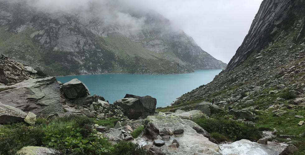 Hier beginnt der eigentliche Aufstieg zur Gelmerhütte. Steil geht es auf dem Hüttenweg aufwärts. Man überquert den Diechterbach und wandert über Geröllhänge und grosse, treppenartig angelegte Steine bis zur Gelmerhütte SAC. Teilweise ist klettern angesagt da die treppenartig angelegten Steine ziemlich grossen Abstand aufweisen. Das Wetter hat sich leicht verschlechtert und der Nebel verschleiert uns die Sicht. Nichtsdesto trotz sind wir guten Mutes und steigen weiter den "Weg" hinauf.