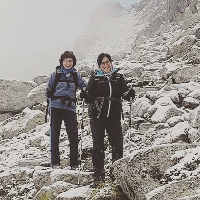 Als erstes steht ein reiches Wanderfrühstück bereit, wir freuen uns und lassen es gemütlich angehen. Denn der Abstieg ist zur Zeit nicht möglich. Die Nacht durch hatte es geschneit und die Temperaturen sind stark gefallen so dass die Steine rutschig und eisig waren. Da die Sonne schien mussten wir bis ca. 10.00Uhr warten bevor wir es wagen konnten.